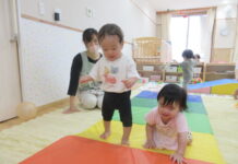 たんぽぽ0歳児 お返事「は~い」(たんぽぽ) 2016年10月20日 117 名前を呼ぶと「は~い」と手を挙げてお返事をすることができます。今までは誰の名前でも「は~い」でしたが,だんだん自分の名前が分かってきたようです。