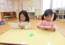 今日は暑い1日。お昼寝前に久しぶりに布遊び『海だ~海だ~』をしました。