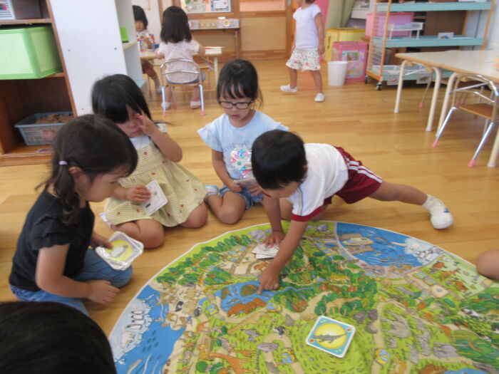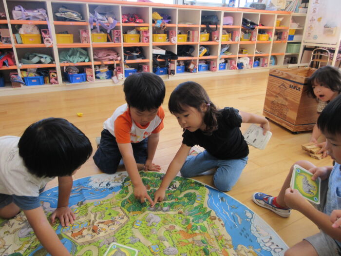室内ではカードゲームに挑戦!同じイラストを探すのが得意な子、そうでない子など姿は色々でしたが、「あ!これ!」と見つけた時は喜ぶ姿が見られました♡