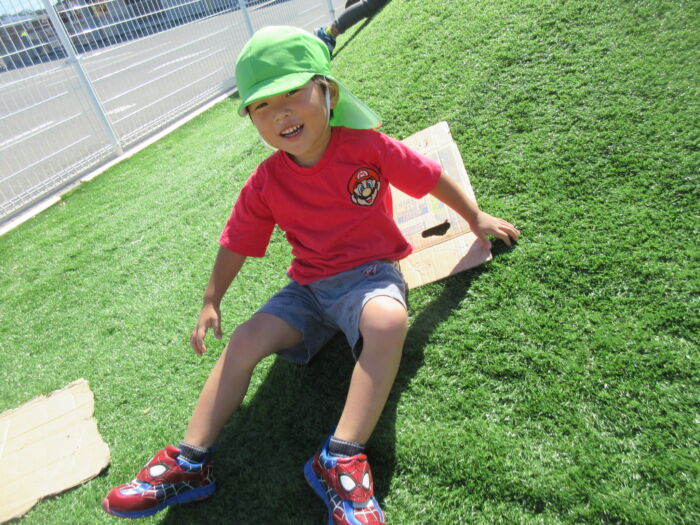築山の芝滑りが人気で、何度も繰り返し遊ぶ子どもたち♪♪