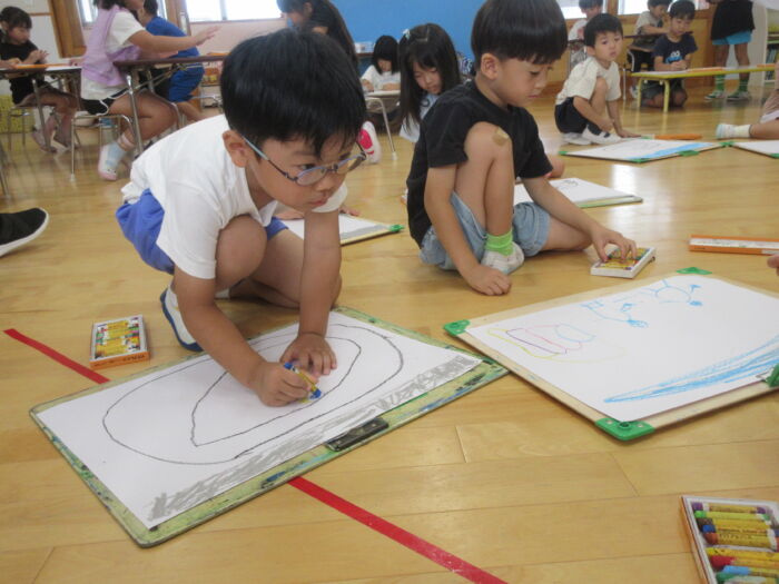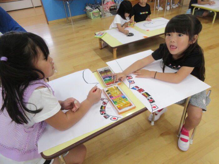 などなど話しをしながら自分の好きな、そして頑張った競技の絵を描きました。