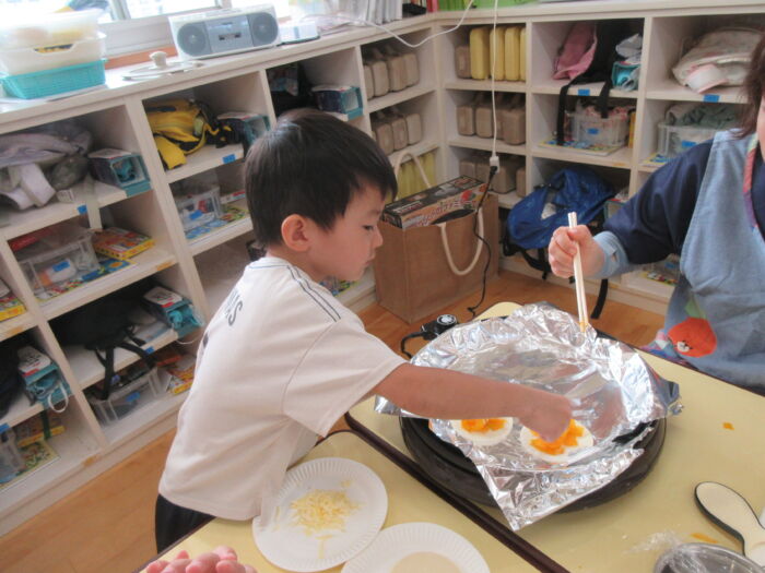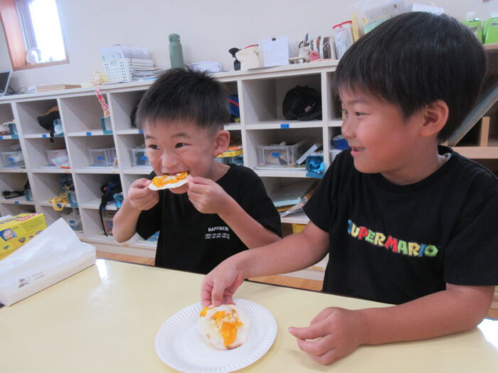 餃子の皮にかぼちゃとチーズをのせていただきました!!