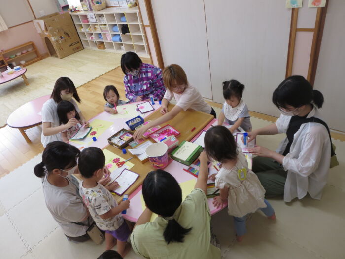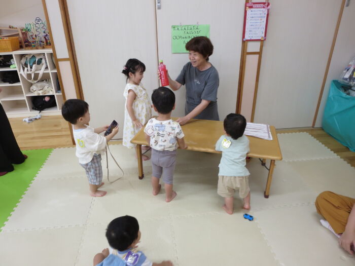 ※にこにこの日は、10:50~11:30に外遊びができる日もありますので、帽子・着替え・タオルなど必要に応じてお持ちください。暑い日が続きますので、お家の方、お子さん共にお茶もご持参くださいね。