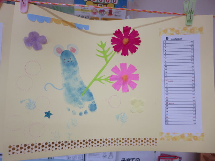 ●24日(水) にこにこの日(9:50~11:30) ・カレンダー作り*にこにこの日の合間に、10月のカレンダーづくりをします。足形を使ったカレンダーを作っています。※予約は必要ありません。