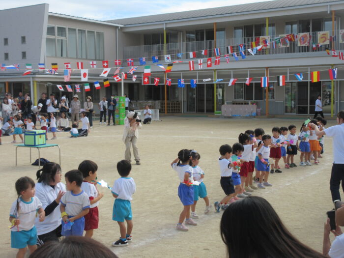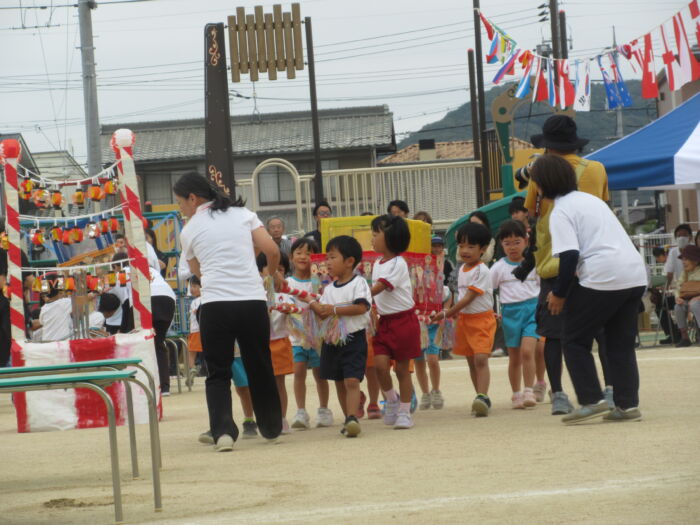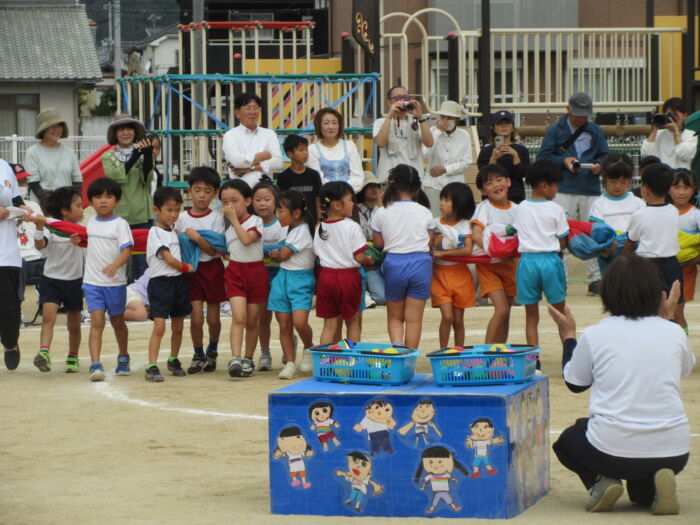 次に、みんなでかけっこを楽しみました。かけっこした先で何かががもらえます。