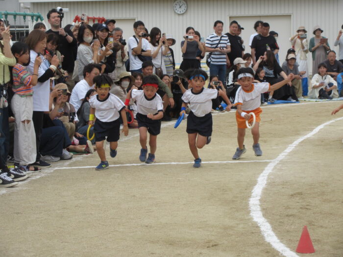 大トリは、恒例のキッズリレーです。勝ち負けではありません。すべての子ども達が全力を出し切る姿、真剣な表情が恰好よかったです!まさに『疾風が如く」走り抜けました。